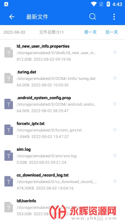 4.最新文件:将文件按时间进行分类,并找出手机中最新修改或生成的文件,可以浏览和管理每天生成的文件;