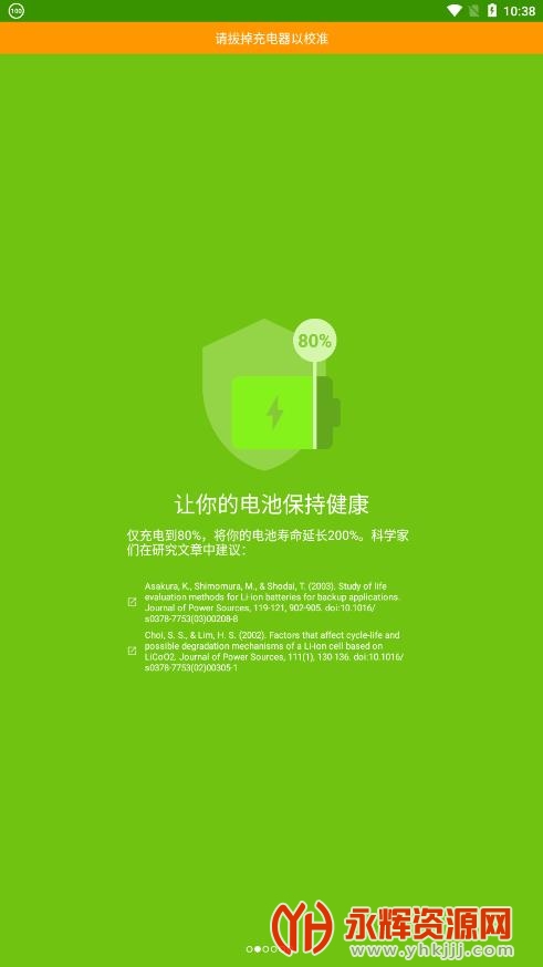 电池的寿命是有限的。每次给装置充电,都会损耗电池,降低电池的总容量。科学研究表明,只将手机充到80%,能将电池寿命延长到200%。- 通过使用我们的充电警告延长电池寿命。