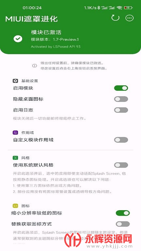 如遇到模块激活后不生效,请尝试: 卸载模块 - 重启系统界面 - 安装模块 - 在Xposed管理器中激活 - 重启系统界面