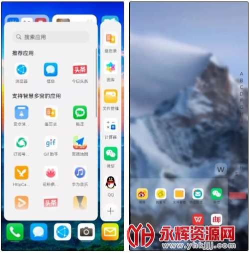 2、现在开始使用侧滑索引 ,与鸿蒙系统中的“智能多窗应用栏”有点相像的
