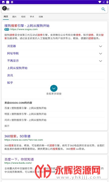 2、全屏搜索,多标签页,电脑模式,夜间模式。
