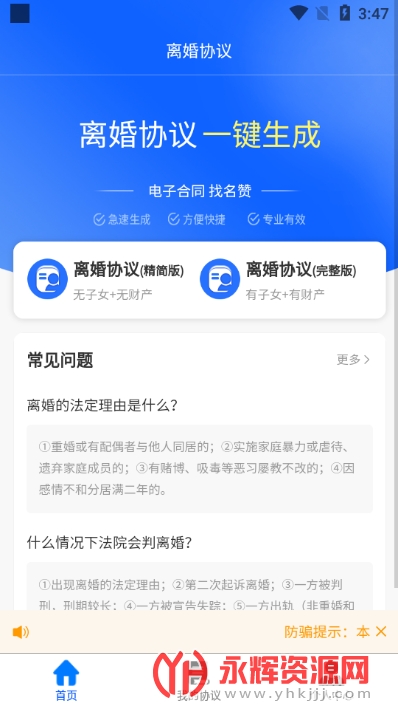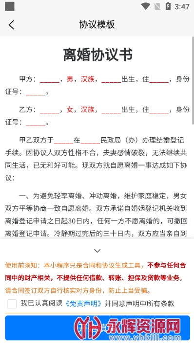 1、离婚协议书生成助手,提供各种版本的离婚协议书模板。
