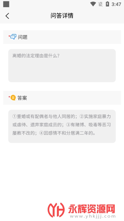 1.这里的功能服务非常多,有离婚咨询、财产问题、赡养纠纷、等等永辉资源网都能一键查询。