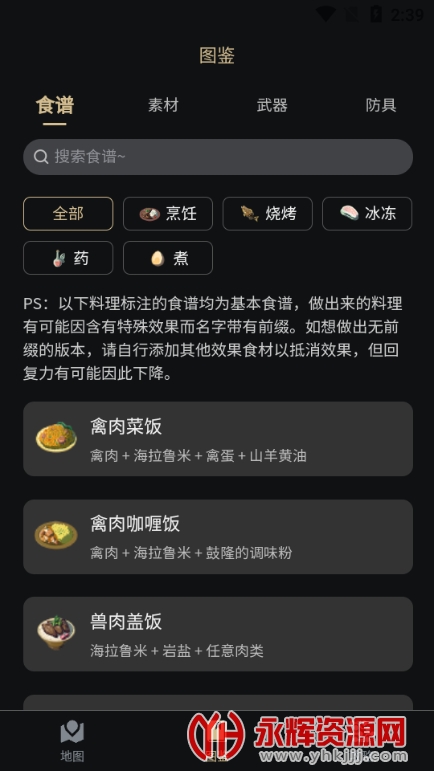 除了地图,你是否还遇到过以下困扰:如何做一份水果蛋糕?这个素材有什么用?哪件武器伤害最高?不用怕,小助手为勇者们提供了各类图鉴:食谱、素材、武器、防具,各类信息轻松查询!