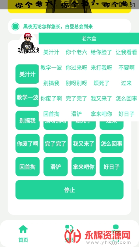 这里为用户朋友带来了老六盒软件,这是一款经典的语音盒子软件,其提供了非常丰富的语音内容,用户可以随意按照自己的需求点击音效,感受到非常有趣的播放体验,涵盖语音内容相当丰富,喜欢玩音效盒子的用户不要错过哦!