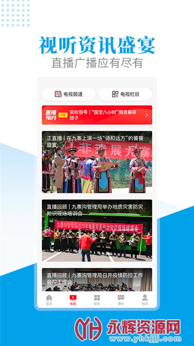 1、汇集九寨沟特色频道、热门电台频道等直播内容,随时随地看电视;