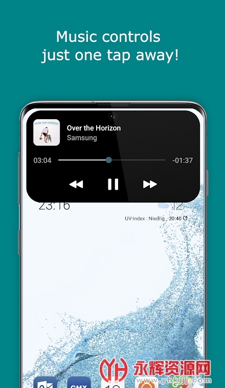 由于dynamicSpot使用Android的通知系统,它几乎与所有应用程序兼容,比如消息通知、计时器应用程序,甚至音乐应用程序!