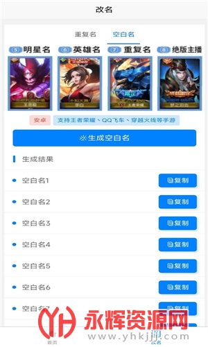 1.点击软件内部生成,将名字直接复制到游戏中,你就可以拥有专属的空白昵称了。