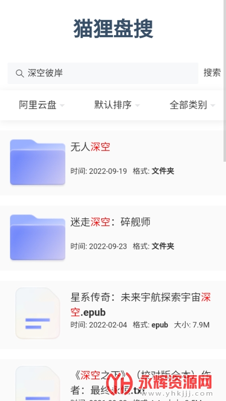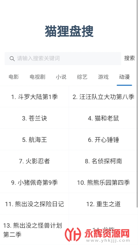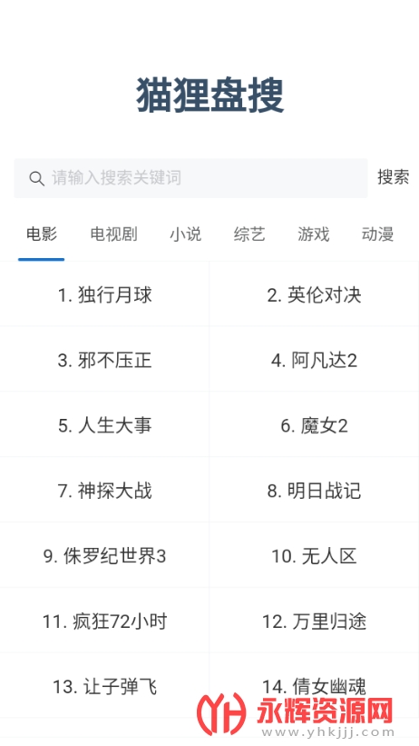 猫狸盘搜APP是一款高效的网盘快搜类应用,用户可以使用其搜索到各类优质的资源,所有的资源都是免费的在网盘里可以随时搜索随时播放,还可以看到自定义文件夹的内容,获取到自己最需求的资源,有需要的用户朋友现在就来下载吧!