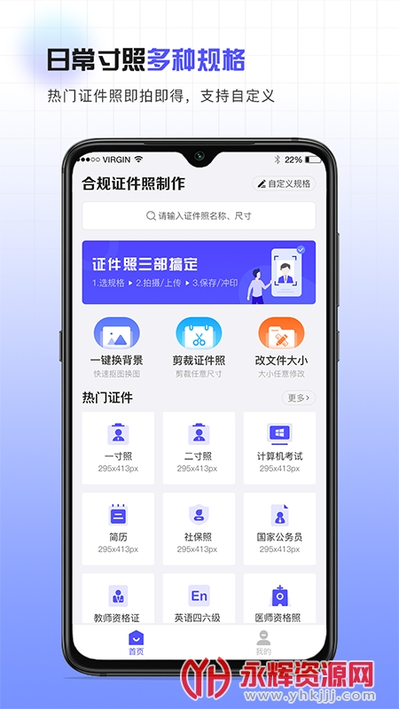 照片合规处理客户端手机版APP是一款可以帮助广大用户纠正照片合规的软件,您可以自主选择各类证件照的的大小,更换底图修改照片背景都是可以的,能够很好满足广大用户需求,一键生成证件照,有需要的用户现在就来下载使用吧!