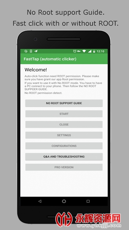 自动点击器帮你自动点击屏幕,无需ROOT权限。可以方便添加点击位置,设置点击速度。类似于按键精灵功能。只支持Android7.0及以上系统,低版本系统会提示类似“安装包解析错误”等提示。 支持到Android4.2版本,但需要ROOT或电脑连接ADB并通过命令打开Wifi adb调试