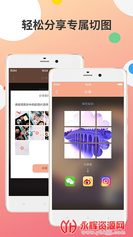 1.一键将图片剪成九宫格和四宫格,一键分享朋友圈;