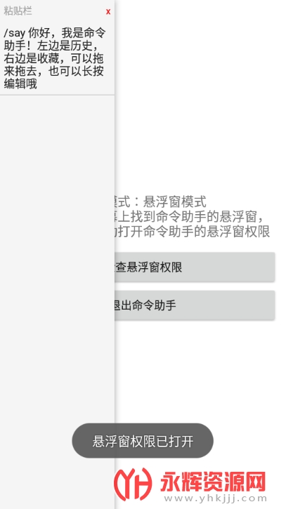 1、可以快速的进行指令命令的编写,界面清爽简洁,需要悬浮窗权限才可以使用哟