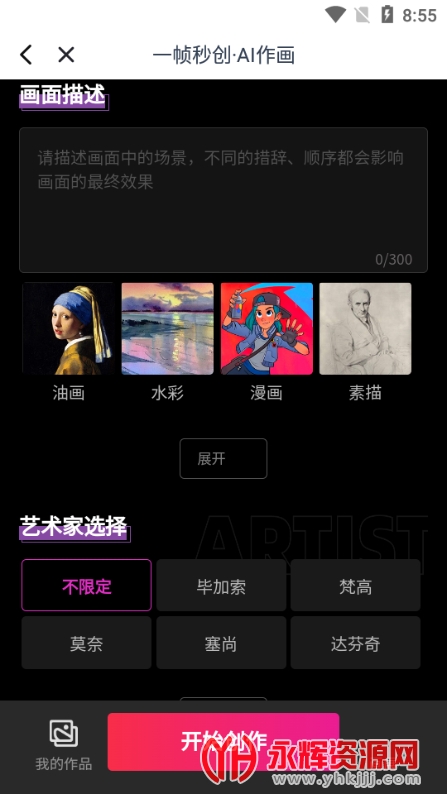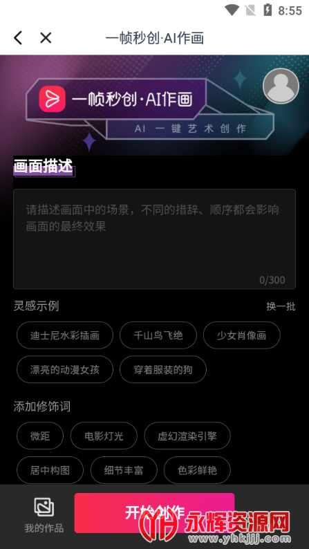 一帧秒创app是一款ai作画类软件,用户可以在这里一键生成想要的效果作画图,提供了非常丰富的ai作画功能,用户可以在一帧秒创app上完成快速创作,有着各种各样的ai作画内容,如果你很享受ai作画,现在就来下载体验吧!