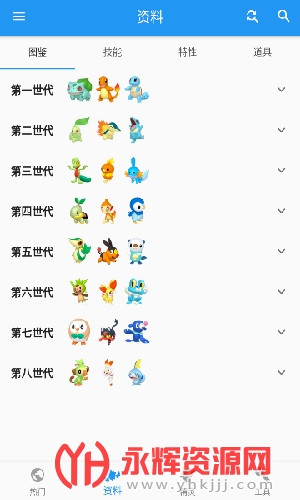 可查询从第一世代到第八世代的所有宝可梦精灵资料,包含了详细的精灵介绍、技能介绍以及各种道具查询。