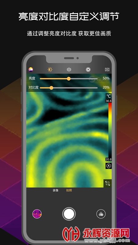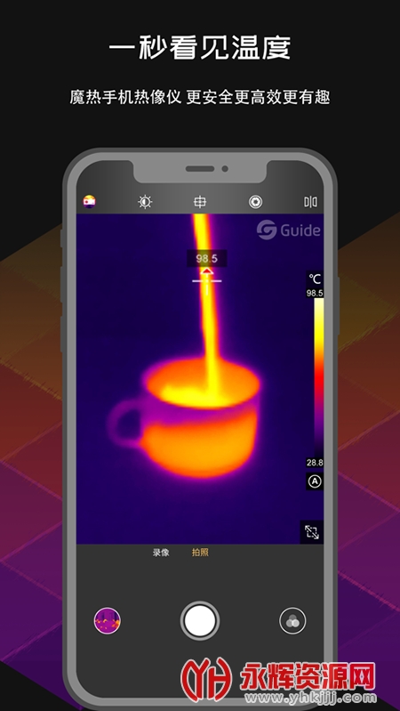 应用app非常适合手机的红外模块。在实时视频模式下,可以实时测量温度、切换调色板(包括自定义调色板)、拍照、录像、设置参数、分析物体、浏览图片和视频等。它还具有重新分析照片,回放视频,云功能和多语言等功能。,帮助你更好地记录有温度的美化瞬间。
