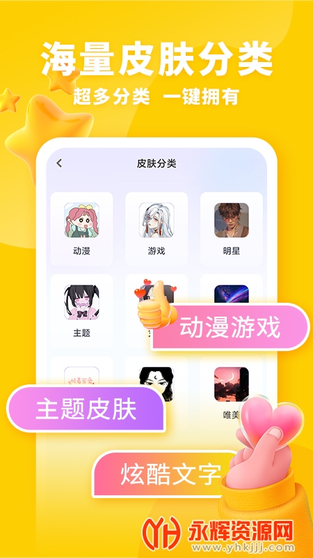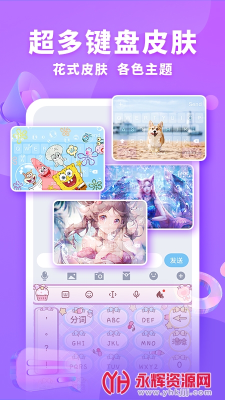 键盘皮肤输入法集各种分类皮肤,多种特效表情,多种主题于一体的花样键盘。您可以选择不同字体和不同主题搭配,让沟通变得生动有趣,花样键盘皮肤任你选择,类型丰富,动漫、萌宠、游戏等多种类型尽在其中,多种特效表情应有尽有,键盘美化更轻松。