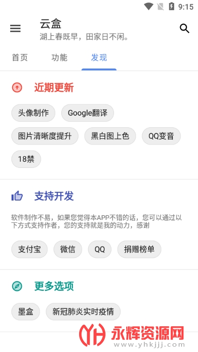 云盒app官网下载的就是一款工具类软件,在这款软件里包涵了非常丰富的小工具,用户可以根据自身的需求来随意使用,您可以直观的感受到这些小工具为您带来的便利,并且没有任何的广告,使用也是完全免费的,有需求的用户现在就来下载使用吧!