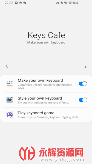 三星KeysCafe多彩灯光特效软键盘这是一块功能性十分强大的手机多彩键盘移动服务平台,用户通过三星keys cafe内置超多主题,壁纸等,海量资源都可以免费使用,根据自己的主题风格来选择吧!
