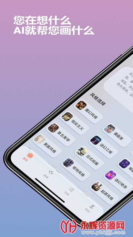 Ai作画看见不一样的图画 将文字变成迷人的数字艺术作品!你只需要输入一个提示语,选择一种艺术风格——然后看着在几秒钟内将你的想法变成现实!输入关键词,APP里头的AI技术能您的想象力,将枯燥无味的关键词瞬间变成创意十足的画作。