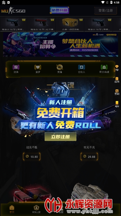 mucsgo app手机版是一款免费开箱发福利的软件,直接打开一个未知,送你一个惊喜,玩家朋友们下载这款csgo开箱mucsgo软件后,就可以直接领福利了。进roll房,可以每天得顶级装备,都是看脸,运气好发财了。