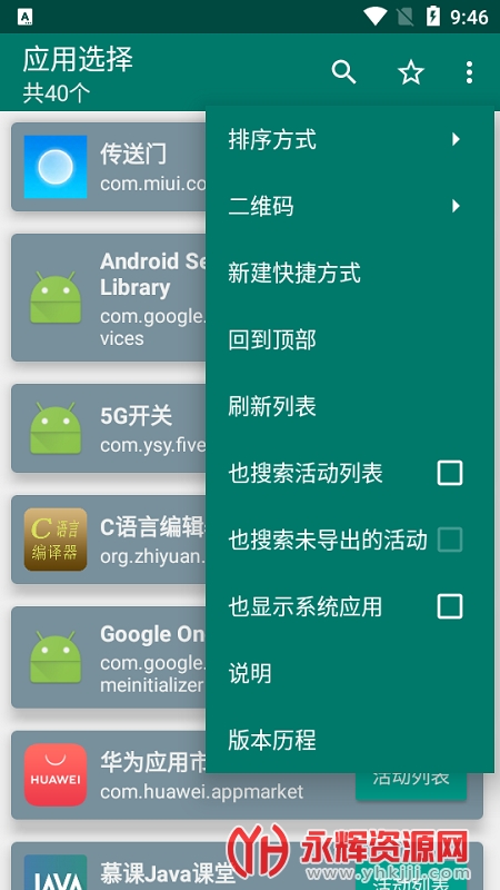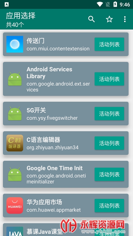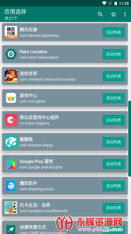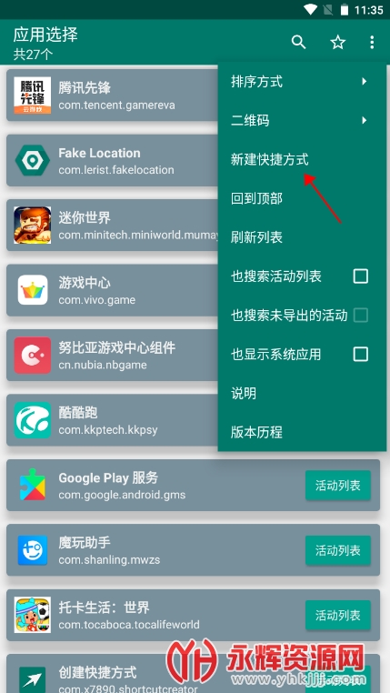 3.当然也可以查看活动列表,把每个app里面,需要执行的活动快捷方式都发送到桌面哦。