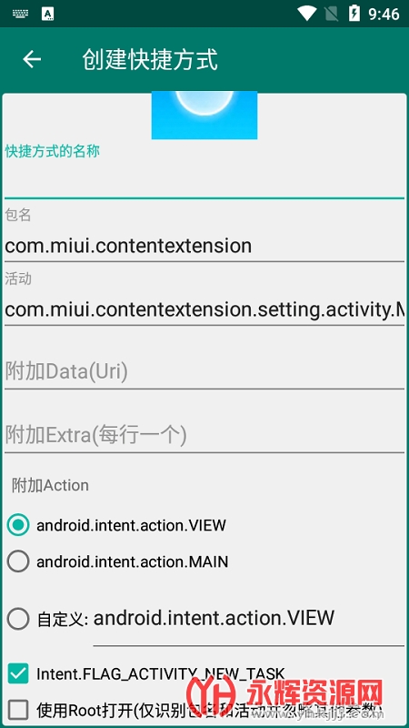 有的界面打开需要action_view,有的不要(默认action_main),选错有可能打不开。