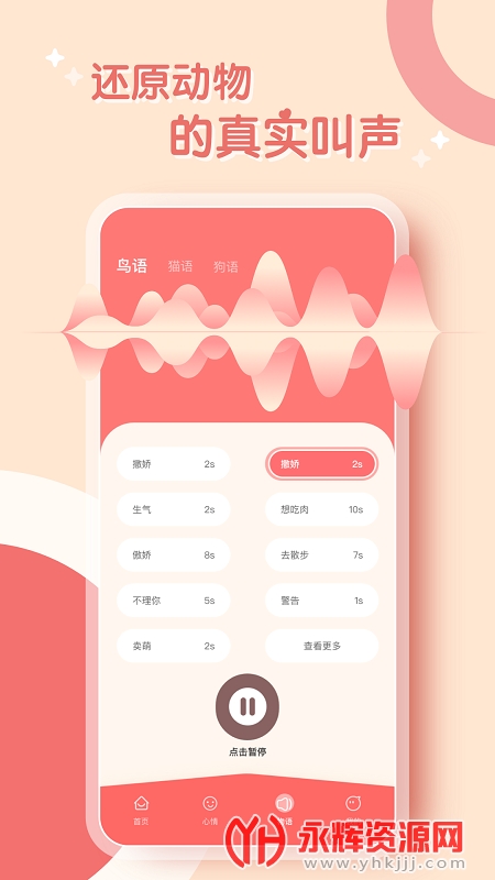 4、宠物语言翻译可以把动物的叫声翻译成你自己的语言给你听。