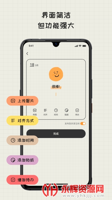 2、在日记中用户可以插叙对应的图片、视频等信息,还有好玩的贴纸;