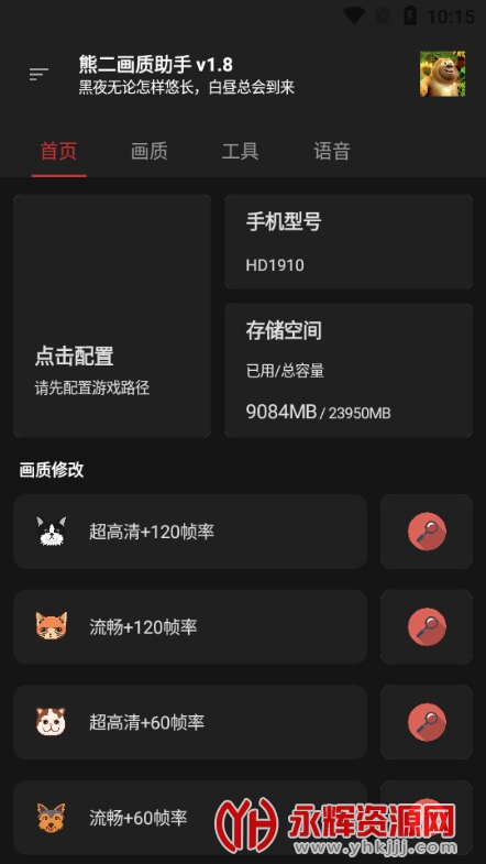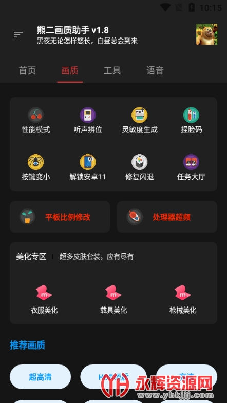 熊二画质助手app是一款优质的画质助手软件,这里提供了丰富的游戏工具,用户可以在这里浏览到众多的游戏画质工具,支持一键完成修改,能够很好的满足广大游戏玩家的需求,提升玩家朋友的游戏体验感,有兴趣的玩家现在就来下载使用吧!