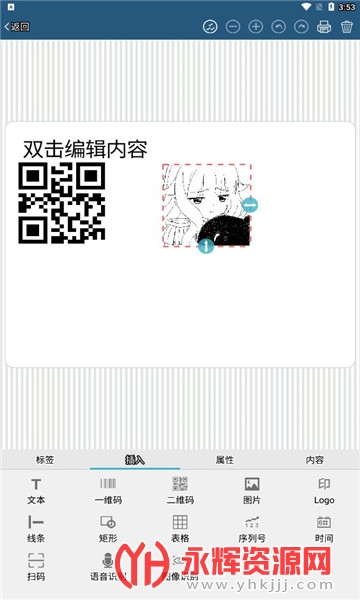 3、辑:支持文本、直线、条码、二维码、日期、图片、几何形状的编辑打印