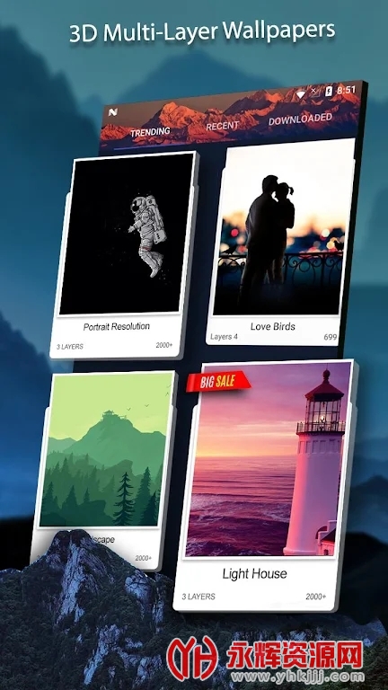 2.平台提供了各种高清壁纸,也带给你更多3D立体壁纸,效果特别棒。