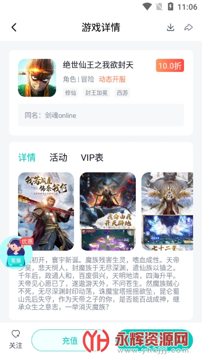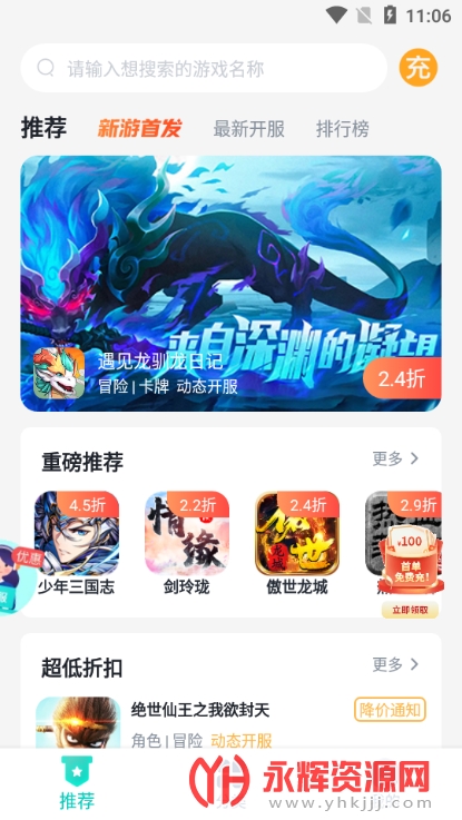2、你可以搜索你想玩的游戏,有海量的游戏福利,充值折扣供你体验。