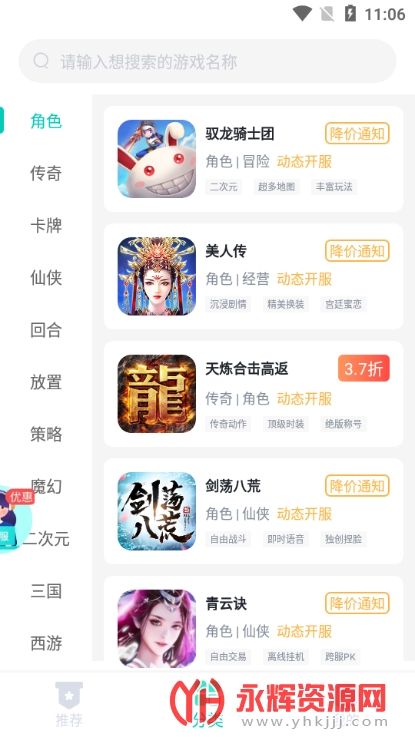 2、种类多样,分类详细,卡牌、策略、动作、射击、角色扮演