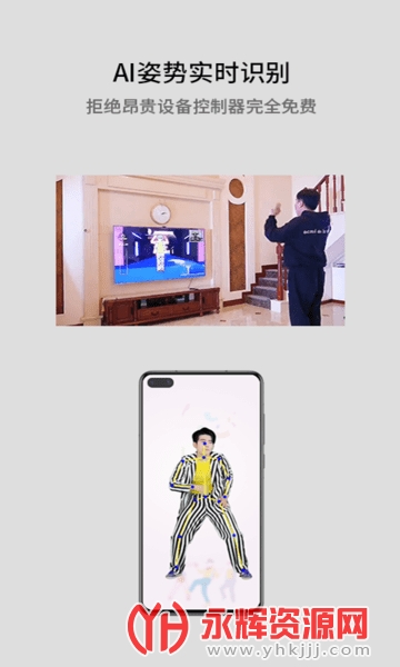 用户可以通过肢体动作实现操控电视端的游戏,如用户姿势实时和【热舞型动】