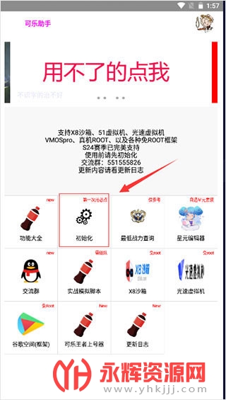 1、首先我们打开可乐助手最新版本2023,点击初始化;