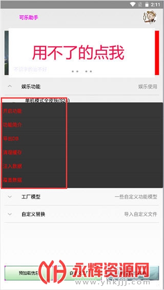 导出DB:把要开启的功能导出为DB,可以通过自定义替换来使用