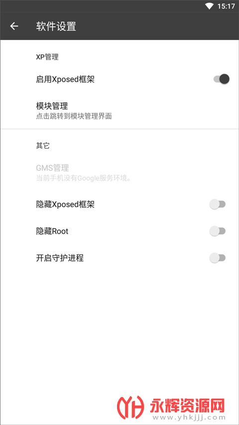 4、重头戏还是自带激活XP框架,可直接导入XP模块,首次启用XP后需要重启软件生效,还可以一键隐藏ROOT、隐藏XP框架。