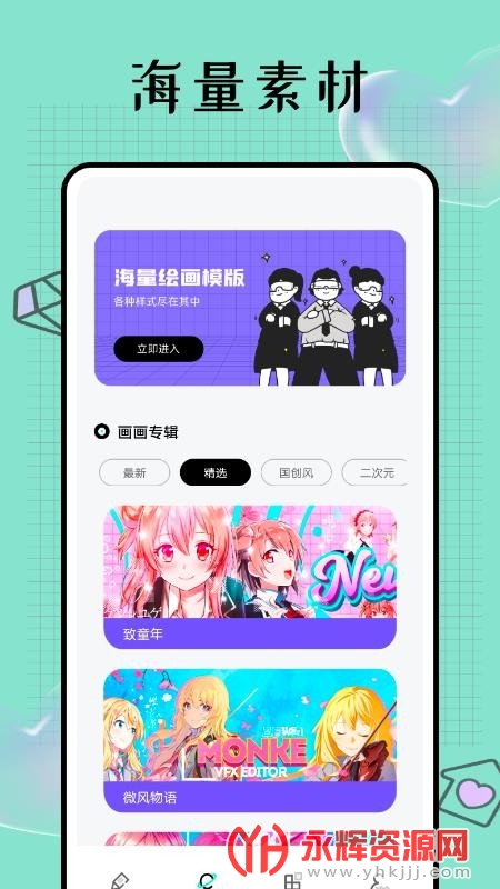 具有丰富多样的绘画素材资源,能够根据个人的喜好任意选择