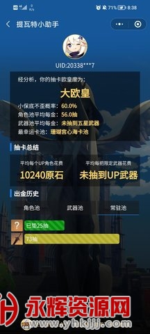 提瓦特小助手app官方下载是一款专为原神打造的游戏小工具app,软件包含了圣遗物评分,抽卡模拟分析,以及最新的游戏活动资讯,涵盖了多种游戏的辅助功能,是一款非常值得喜欢原神的玩家下载的一款游戏辅助app,欢迎来本站下载!