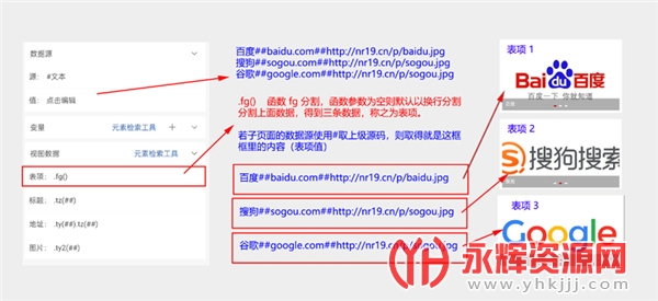 E2 还能进行数组操作,在M浏览器里轻站或虫子获取列表的函数就需要获取数组。为了更容易了解并使用函数,一般处理文本的函数均以 t 开头,比如取文本左边的 tz , t = 文本,z 是左的拼音头,然后就能知道取文本右边函数为 ty 了。 处理数组的函数 以 i 开头,如 .ij(aaa) ,j = 加, 往数据中加入一行数组,值为 aaa 。