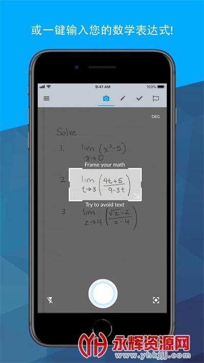 3、支持拍照识别,利用这里的拍照功能可以一键拍照自动识别数学表达式;