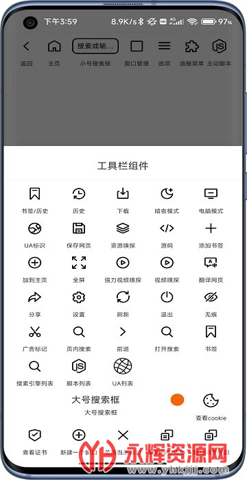 不仅在常规浏览的功能做了细致的优化,还扩展了许多实用功能,如 聚合搜索,自定义工具栏,自定义主页,自定义页面侧滑及动画,自定义搜索引擎,js扩展,油猴扩展,abp订阅,浏览器标识,资源嗅探 等等。每一项功能都是匠心打磨,只为呈现给用户最好的体验。
