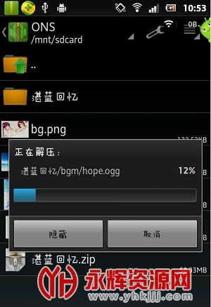 2、然后我们下载各种ons游戏,一般ons游戏都是一个压缩包,我们将下载下来的游戏文件解压,然后拷贝到手机上。