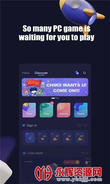 chikii云游戏中文版是一款能够让你免费体验上百款热门电脑端的云电脑app,内置虚拟按键,还可以接外设,让你的游戏的体验效果更佳,游戏延迟更低,在手机上就可以畅玩3a大作,喜欢玩游戏的小伙伴,一定不容错过!