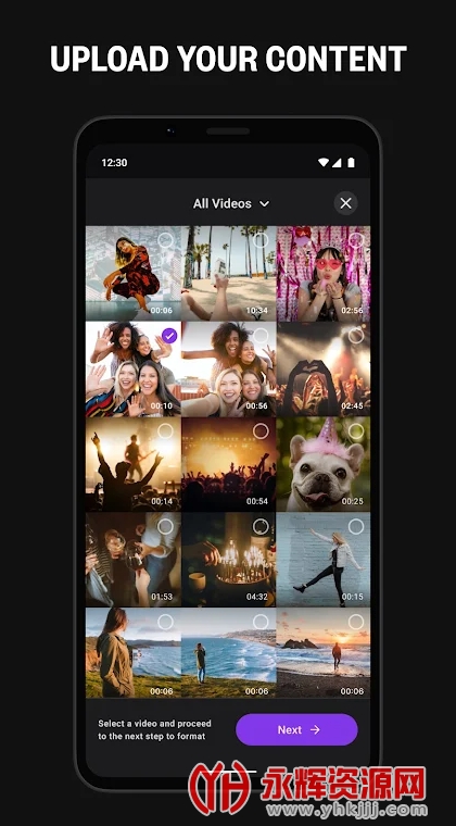 从您的相机胶卷中选择一个视频,然后将其裁剪并修剪成您希望在大屏幕上展示的 15 秒。