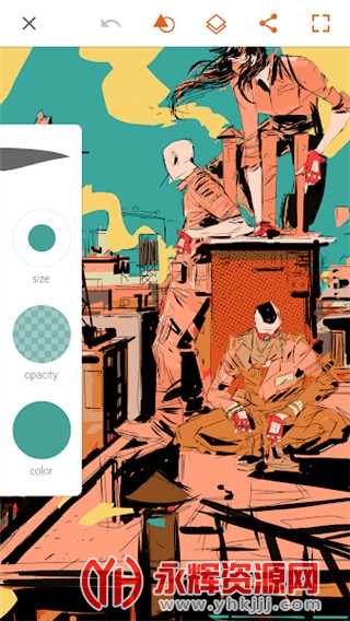 2、估计该应用定位是配合位图草稿进行矢量图风格的插画创意和海报设计;