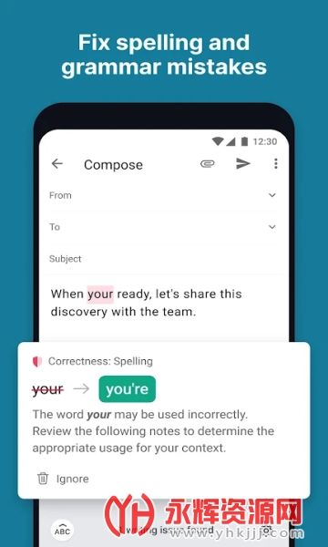《Grammarly语法键盘》是你在英语学习和工作的好帮手,大家能够通过这个平台去轻松的进行写作,并且不用担心自己的语法或者单词拼错。它能够帮助你在你的日常打字中纠正您的语法、拼写、标点符号等。让你能够在所有应用程序中清晰、自信、无误地书写。有需要的快来下载使用吧!