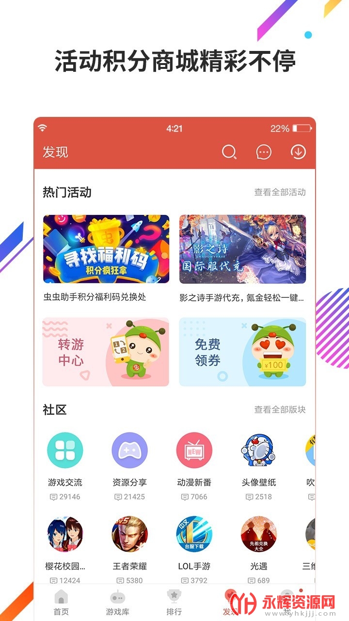 虫虫助手海量游戏平台app,虫虫助手为广大手机玩家提供最新最热门的手机游戏免费下载、活动礼包和相关资讯内容,是一款提供游戏的平台,上平台上有非常多种类的游戏,满足不同年龄段,不同群体对于游戏的需求,它专门收集的了全网最精品最好玩最热门的游戏,首席推介官,为您倾情推荐!快快点击下载尝鲜吧。
