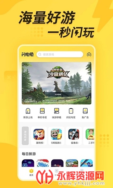 闪龟龟是一款类似于游戏辅助类型的app,用户在这款闪电龟app里面可以搜索你想玩的游戏,并且还可以直接下载到手机里面来,也汇集了各地的玩家们,再也不用每一个都下载,只要下载一个游戏盒子就可以,热门的游戏这里都可以玩。